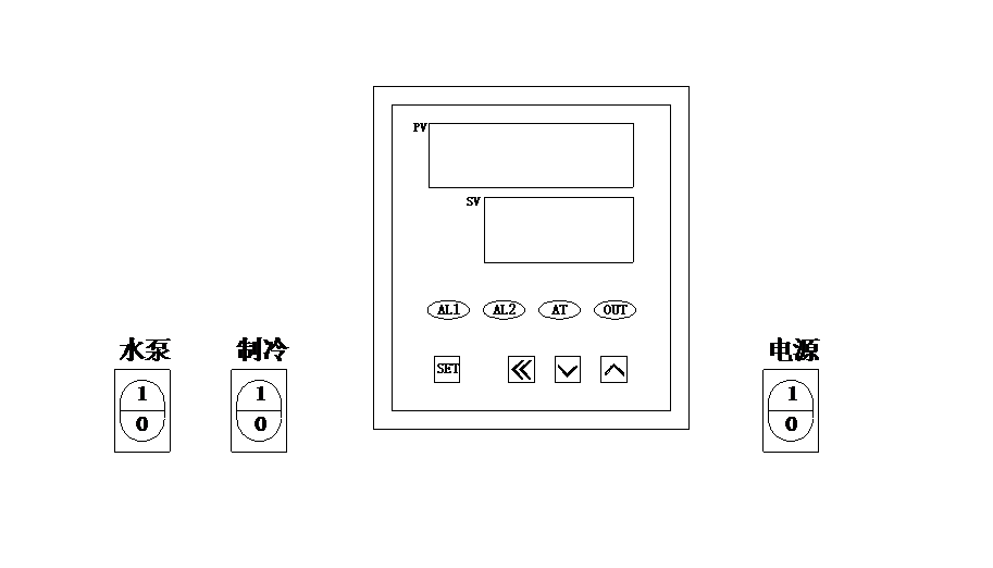 2. 接通電源,打開電源開關(guān),使開關(guān)處于“通”的位置,設(shè)備進(jìn)入上電狀態(tài)。此時(shí)即可開始溫度的設(shè)定操作,同時(shí)將制冷和水泵開關(guān)處于“通”的位置。
