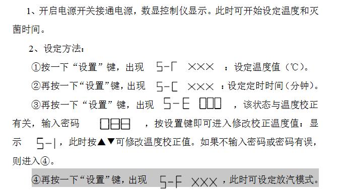 1、開啟電源開關接通電源,數顯控制儀顯示。此時可開始設定溫度和滅菌時間。