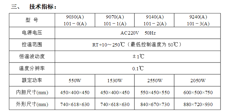 5. 設定溫度控制器,設備即按設定的要求自動運行。 6. 干燥結束后,關閉電源開關,取出物品。