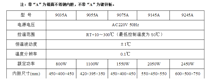 DHG系列臺式鼓風干燥箱是系列產品,容積有30、50、70、140、240升五種規格。干燥箱外殼體均采用優質鋼板表面烘漆,工作室采用一般鍍鋅鋼板或鏡面不銹鋼板,工作室內配有兩層不銹鋼絲制成的擱板,中間層充填超細玻璃棉隔熱。箱門上采用雙層鋼化玻璃作為觀察窗,能清晰觀察到箱內物品。工作室與箱門連接處裝有耐熱硅橡膠密封圈,以保證工作室與箱門之間密封。干燥箱電源開關、電源指示燈、風門調節旋鈕、控溫儀等操作件均集中于箱體前面的控制面板處,位于箱體的左前側。箱內加熱恒溫系統主要由裝有離心式葉輪的電動機、電加熱器、合理的風道結構和溫度控制器組成。當接通干燥箱電源,并打開風機開關時,電動機即運轉,直接將位于箱內后部的電加熱器產生的熱量通過風道向上排出,經過工作室內干燥物品再吸入風機,以此不斷循環,從而使工作室內溫度達到均勻。智能型溫度控制器,具有自動風速調節功能,在升溫過程中,電動機高速運行,溫度接近恒定時,自動調整為低速運行,從而降低由于風速過快所造成的使用問題。用戶也可以通過簡單的操作,取消此功能。風門調節器能通過開啟風門調節旋鈕,調節箱內進出空氣量。