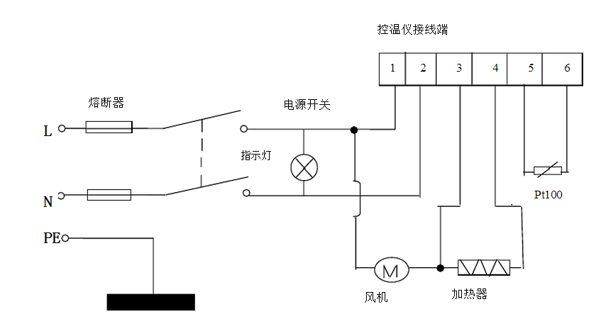 6、DHG-9623A,DHG-9426A,DHG-9626A型號的設(shè)備工作電源為三相五線制,電源插頭接A,B,C三相380V電壓及N零線,保護(hù)接地線接入設(shè)備外殼上專用接柱。