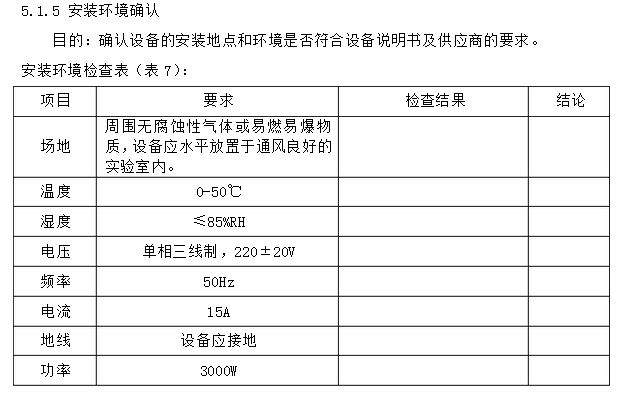 4.2.2 驗證的檢查人應(yīng)經(jīng)過了IQ/OQ知識的培訓(xùn),被允許作為檢查人完成安裝、運(yùn)行確認(rèn)工作。 5.驗證的內(nèi)容 5.1安裝確認(rèn) 5.1.1 設(shè)備的組成 設(shè)備組成表(表3):