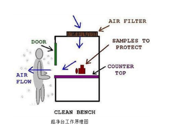 超凈臺是做一般對人體沒有直接傷害的常規(guī)細菌的操作實驗,正壓送風,工作臺工作區(qū)域的氣流形成為水平層流型。區(qū)內空氣經初效過濾器過濾后,由風機壓入靜壓箱,再經高效過濾器過濾,由此送出的潔凈氣流,以一定的均勻斷面風速通過操作區(qū)將塵埃顆粒帶走,從而形成高潔凈的工作環(huán)境。超凈空氣的流速為24~30m/min,這已足夠防止附近空氣可能襲擾而引起的污染,這樣的流速也不會妨礙采用酒精燈或本生燈對器械等的灼燒消毒。