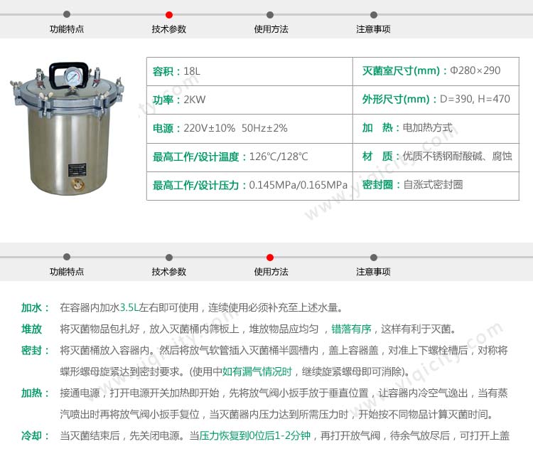 品名:電加熱手提式滅菌器(蝶型螺母開蓋型)型號:YXQ-SG46-280S