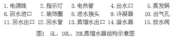 8.     蒸餾水器在工作時,外表溫度較高,切勿接觸,防止燙傷。